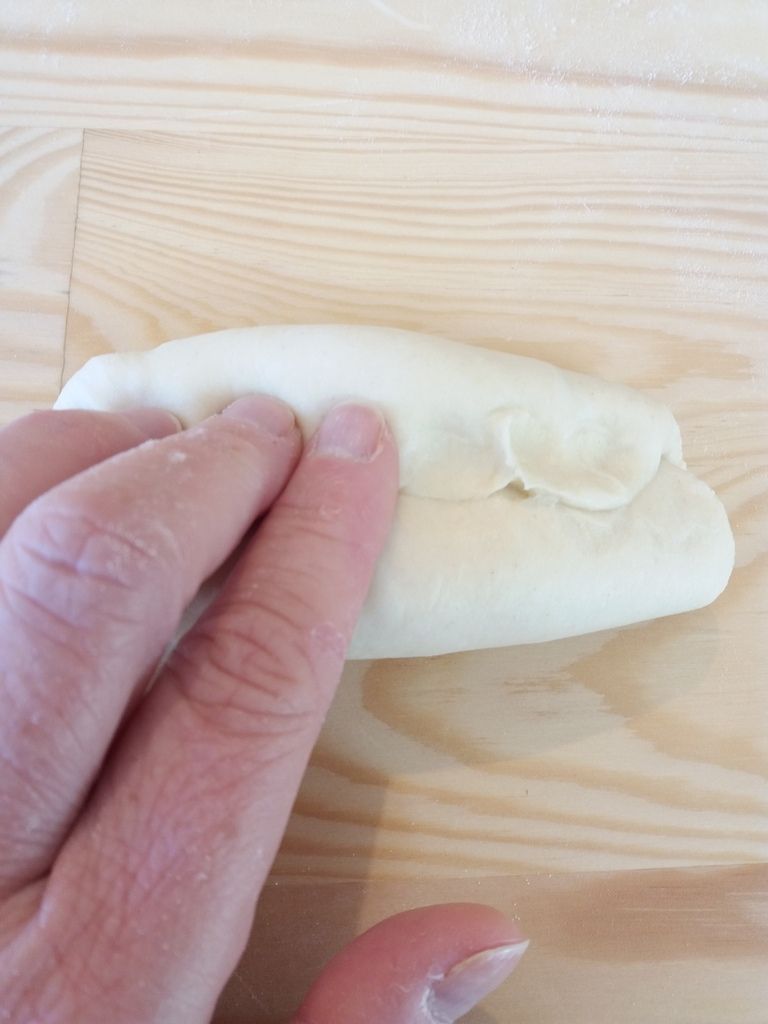 - Rouler le pâton sur lui même pour lui donner sa forme définitive.